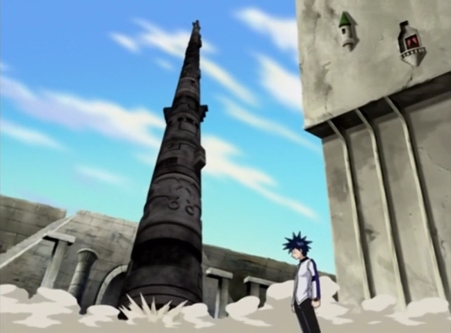 When the storm finally does down there are numerous clones of Hamelin created with the Nature ÄRM, Charm Horn, which can make illusion copies of the user. Hamelin taunts Alviss to try and find the real one among the many illusions. Hamelin attacks Alviss by throwing several daggers. Alviss deflects all the daggers with the Totem Rod but one managed to stab Alviss in the shoulder. All the Hamelin clones laugh at Alviss. Alviss pulls the dagger out of his shoulder and simply replies that Hamelin pissed him off. Hamelin taunts Alviss further by asking him if he can even find the real one. Alviss then uses the Darkness ÄRM, Sealing Skull, sealing the movements of Hamelin and the copies. Alviss then noticed that none of the copies have a shadow and that if he can find the shadow then he can find the real Hamelin. Alviss spots a shadow on the ground and discovers the real Hamelin is still in the air using his Wing ÄRM. Alviss calls out a 13 Totem Pole and destroys one of Hamelin's wings and sends Hamelin crashing to the ground.