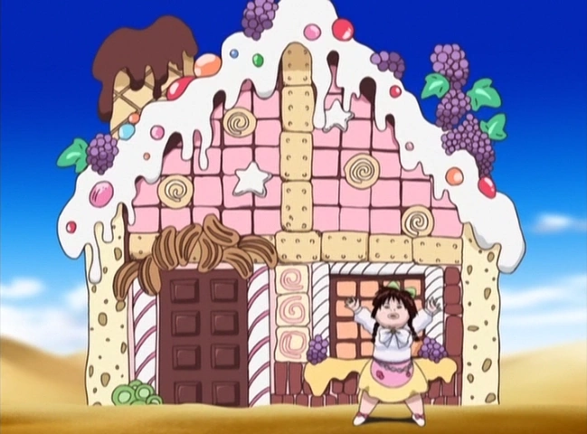 Candy House (お菓子の家, Okashinoie) is a Unique ÄRM which summons a giant candy house which one can eat. It makes the user fatter, but more powerful.