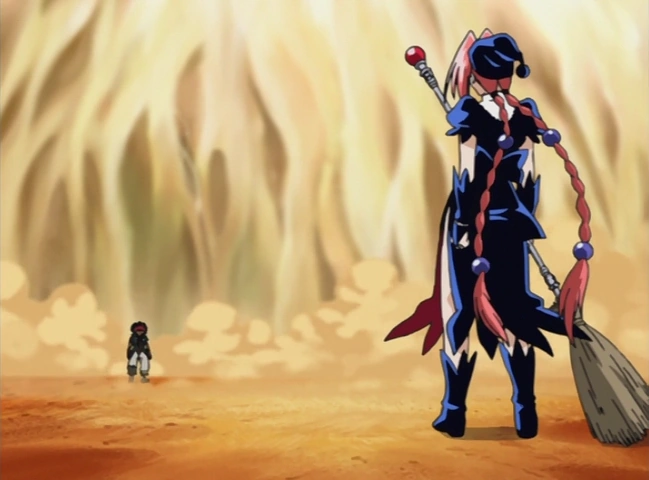 Dorothy challenges Chimera to ask her own heart what it is that she truly hates. Agitated, she yells at her to shut up and insists that it's all of the world she hates and that she threw her heart away long ago. Dorothy calmly tells her that she has thirty seconds to either realize the truth or defeat her, and should Chimera fail to do either in that time frame then Dorothy will finish the battle once and for all.