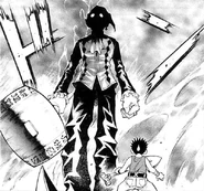 Kollekio uses his Weapon ÄRM in his battle against Jack. Kollekio charges at Jack and assaults him with a flurry of blows from his hammer, meanwhile Jack is blocking and avoiding all the hits. Kollekio stops in his place and changes tactics by pointing pass Jack and exclaiming "What's that?!". However, because Jack isn't gullible enough to fall for such obvious distractions, Kollekio resorts to using his Darkness ÄRM, Slowpoke, which drastically decreases Jack's mobility in exchange for the user's sight during the ÄRM's activation. Kollekio senses his magic and attacks Jack finally striking him with the hammer.