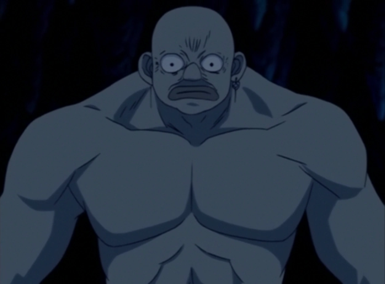There, he spotted Nanashi and Dorothy. Nanashi volunteers to fight him alone, saying that his desire to pulverize the Chess was no less than Ginta's. Orco angrily throws a punch downward at Nanashi, only to miss and smash the ground instead due Nanashi dodging. Orco's fist is then revealed itself to be unscathed by the impact, as he had equipped the bracelet form of the Nature ÄRM, Body Hardener. He then grabs smaller rocks made from the impact and chucks them at Nanashi, but his quick (yet frantic) movements leave him unscathed. Dorothy activates her Zephyrus Broom, saying it was too risky to continue watching, but Nanashi assured her it was nothing he couldn't handle. Orco admits to being hungry and pulls out sausages from his pocket to consume. As he eats, he warns them of who he is and his intent to kill them. Nanashi tells him to savor the sausages he ate for it would be his last meal. He interrogates Orco for information regarding who was responsible for the attack on Vestry and asks how it felt after Orco admited his and Girom's guilt. His anger grew as Orco boasted about how fun it was to destroy houses and frighten people. Nanashi tells the brute that the cave would be his grave, causing him to angrily throw another punch. Nanashi effortlessly stops Orco's fist with the palm of his hand, shocking Dorothy with his immense physical strength. He then jumps up and punches him back in the face, declaring him to be weak. Orco flies back into the pool of water behind him, and Nanashi asks him who among the Chess wields an ÄRM that sucks out blood. Orco is quick to respond Peta's name, hoping he would be spared from Nanashi's wrath. Satisfied, Nanashi uses his Nature ÄRM, Electric Eye, to zap Orco, its power intensifying due to the conduction of being in the water.