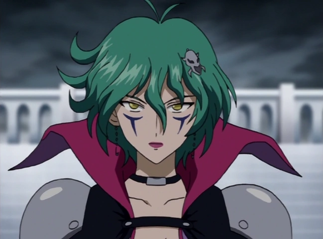 Sarah and the rest of the Ghost Chess join Kapel Meister to confront Team MÄR in the battlegrounds of the coliseum. In the free-for-all, Sarah attempts to use her Scythe Hand to attack Alviss in the back while he ran up the stairs to Clavier, but Dorothy interferes with her Nature ÄRM, Zephyrus Broom.